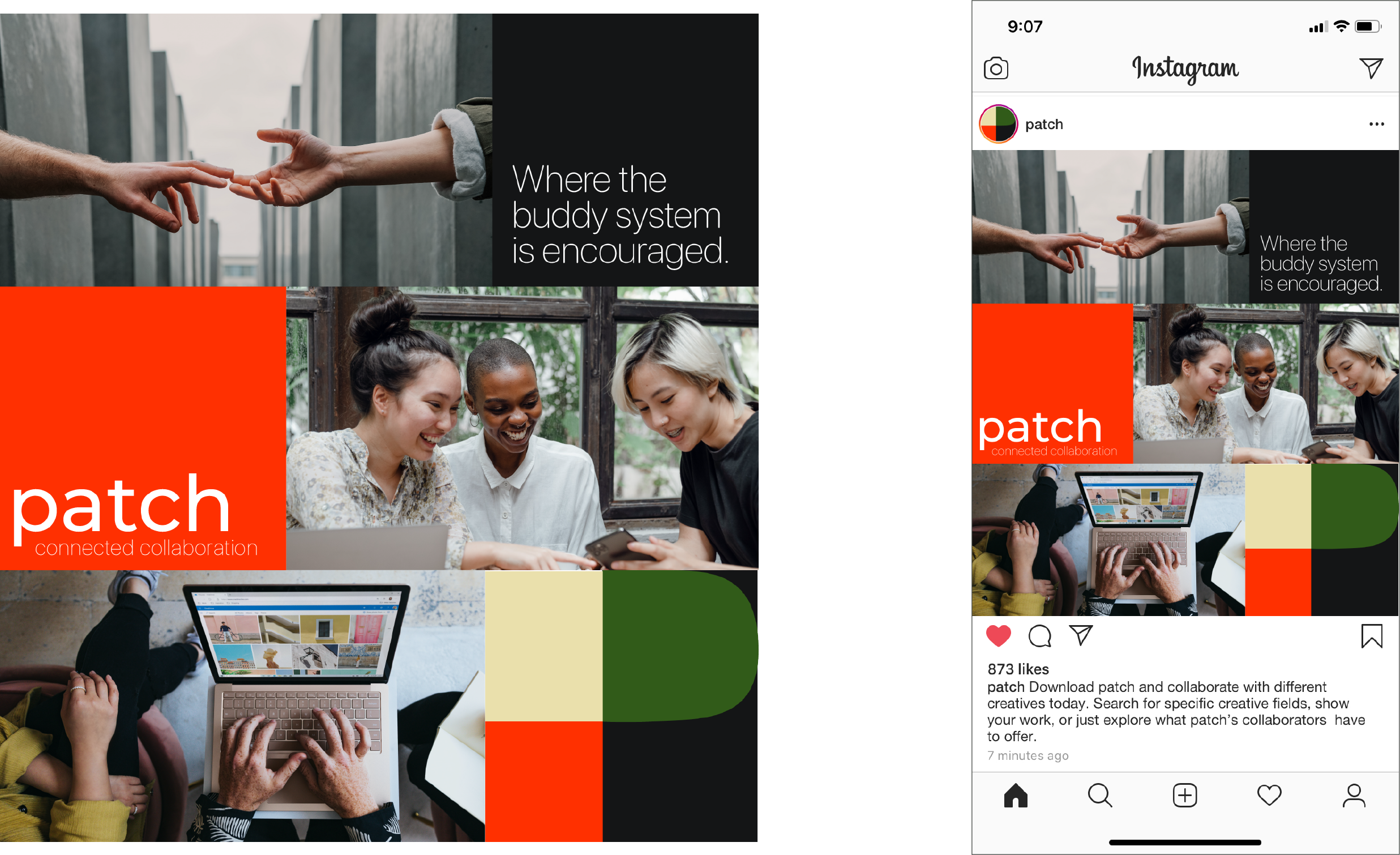 Patch is an app where artists, writers, and creatives come together to help collaborate on projects together. Users can choose the type of creator they need for the project they are looking to collaborate on. Patch is meant to inspire artists and to make connections! The design strategy was to keep the designs clean, and fun, so artists work can shine without the added noise of an overcomplicated design. To keep the theme of the name of patch throughout the design, elements are woven like patches and fit together like a quilt.